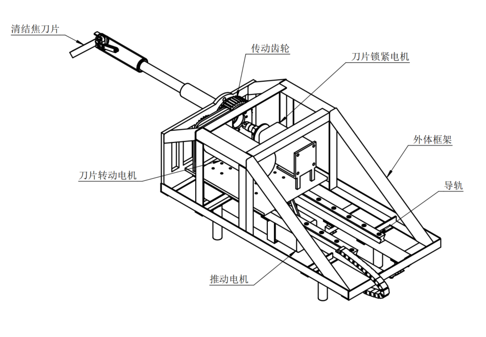 b.刀片锁紧电机负责清焦器工作时锁紧清焦器头部刀片,避免转动时刀片未紧贴燃烧器端面导致的清理不干净。