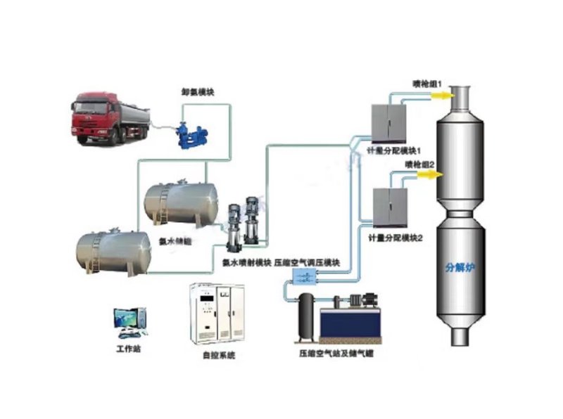 该系统是协调处理烟气氮氧化物的氨水喷射系统,除了进行氨水喷射,还需要工艺协同处理;